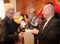 Министар Вукчевић уручује Златну значку Александри Слађани Милошевић