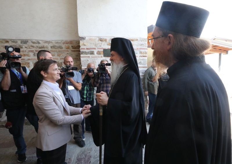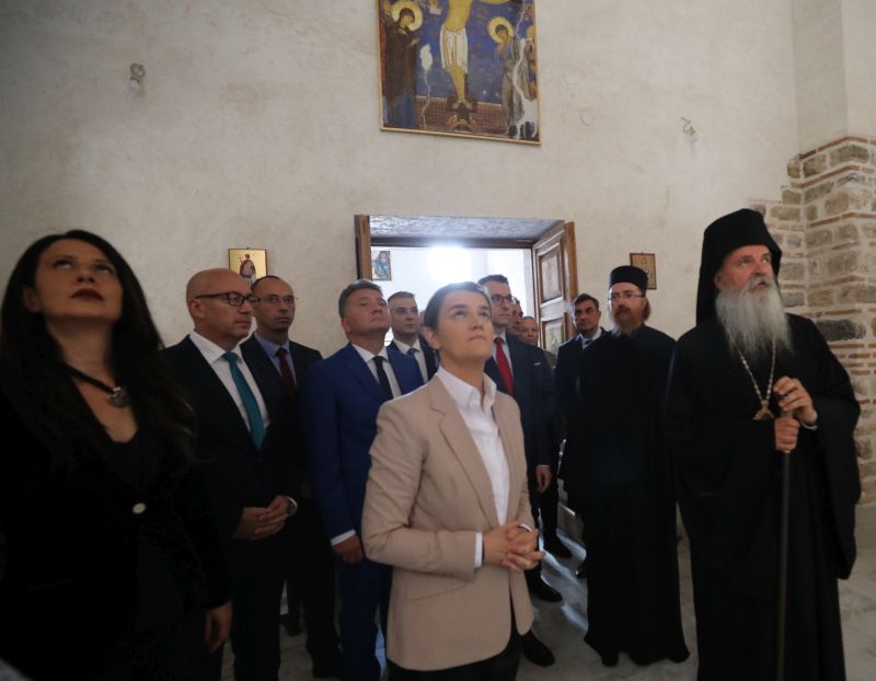 Брнабић je у општини Звечан обишла и манастир Бањска, где су је дочекали епископ рашко-призренски Теодосије, свештенство и грађани.
