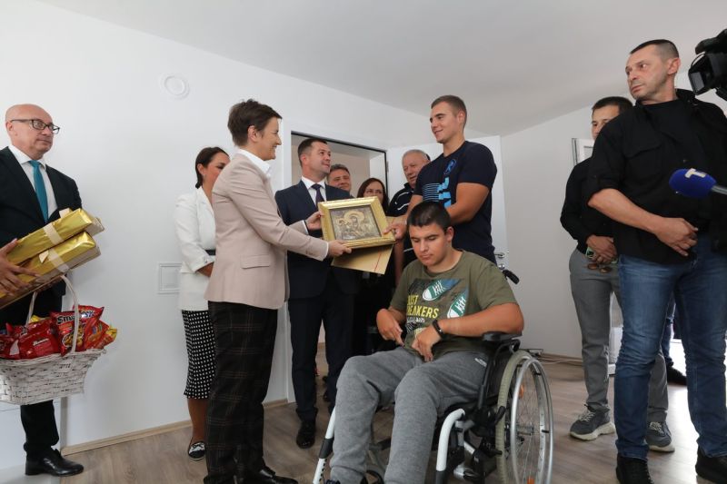 Брнабић је посетила и општину Лепосавић, где је социјално угроженој породици Радосављевић уручила кључеве нове куће, изграђене средствима Владе Србије.