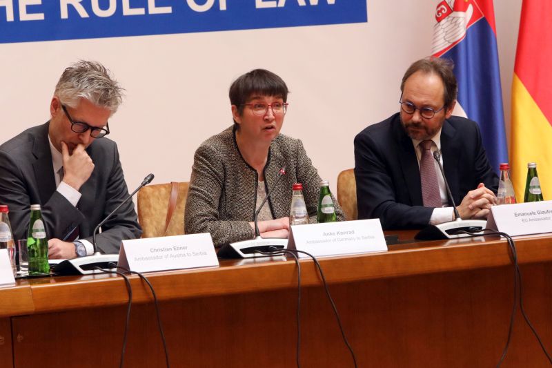 Амбасадорка Немачке у Србији Анке Конрад изразила је задовољство тиме што је Немачка део пројекта „ЕУ за владавину права”, оценивши да је владавина права кључна за процес евроинтеграција, али и за напредак једног друштва.
