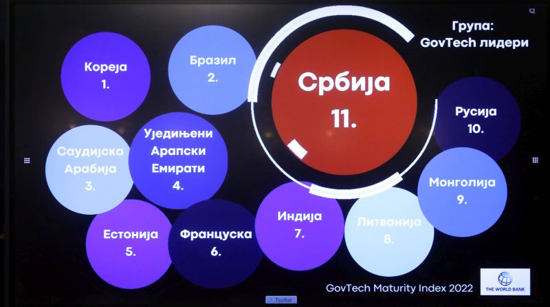 Председница Владе Републике Србије Ана Брнабић изјавила је данас да је наша земља четврта у Европи, а једанаеста у свету по GovTech индексу зрелости технологија у јавној управи, који утврђује Светска банка, оценивши да је то огроман успех.