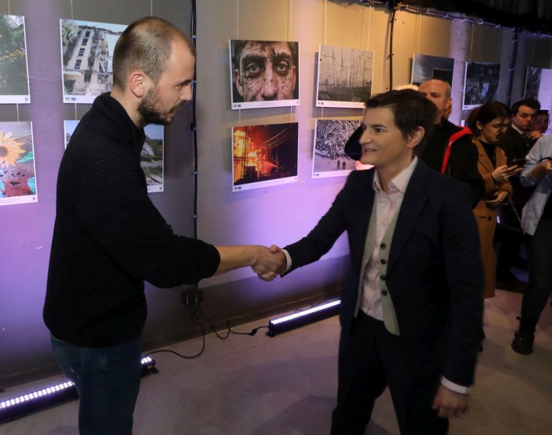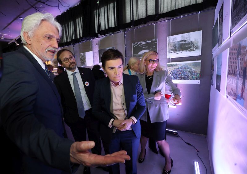 Председница Владе Републике Србије Ана Брнабић присуствовала је данас, заједно са министрима у Влади Србије, отварању изложбе "Година несаломивости" поводом годишњице украјинско-руског сукоба.