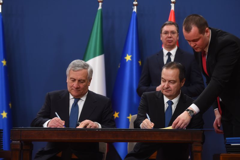 Заједничку изјаву о сарадњи двеју земаља потписали су први потпредседник Владе Србије и министар спољних послова Ивица Дачић и потпредседник Савета министара и министар спољних послова Италије Антонио Тајани.