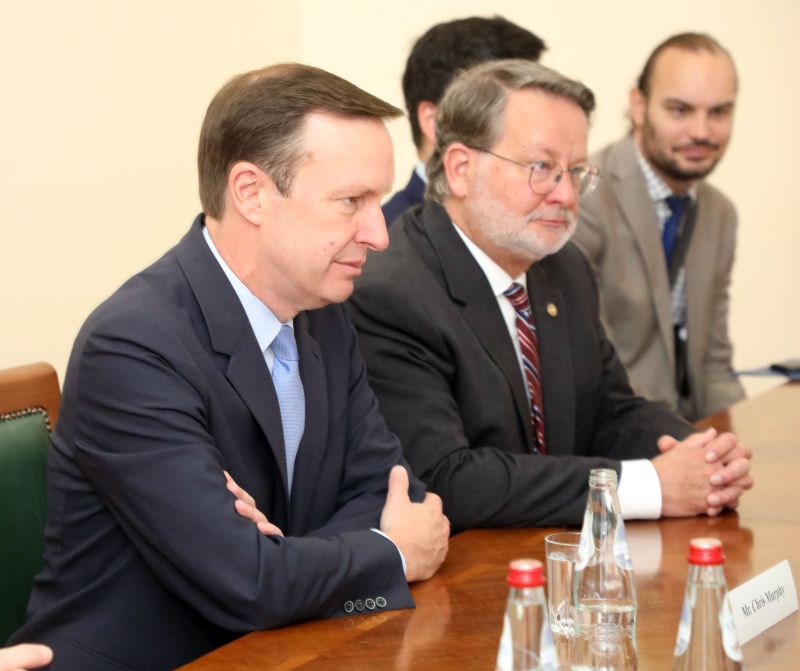 Састанку у Влади Србије присуствовали су сенатори Кристофер Марфи, Гери Питерс и амбасадор САД у Србији Кристофер Хил.