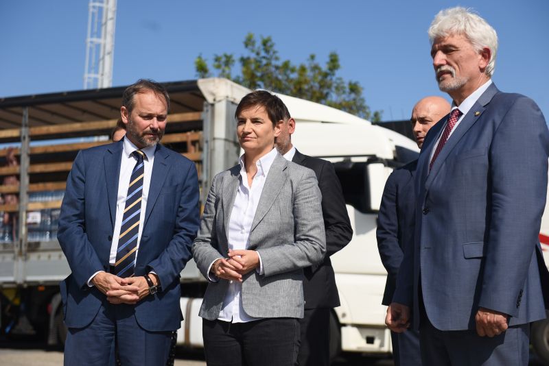 Председница Владе Републике Србије Ана Брнабић присуствовала је данас слању новог контингента од 14 камиона хуманитарне помоћи наше земље Украјини, поручивши да је Србија спремна да још више помогне народу те земље.