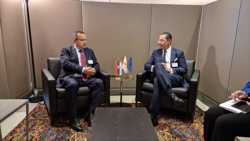 Дачић је првог дана боравка у Њујoрку разговарао са министром иностраних послова Кипра Константиносом Комбосом о даљем унапређењу билатералних односа двеју пријатељских земаља.