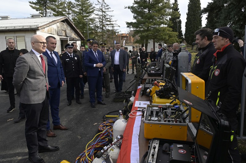 Вучевић је, након презентације и обиласка просторија Центра, присуствовао приказу опреме и средстава за разминирање.