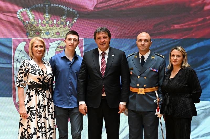 Министар одбране поздравио је професоре Универзитета одбране, полазнике 13. класе ВСБО и 67. класе ГШУ, а посебно официре из страних оружаних снага који су, према његовим речима, доласком на усавршавање у Србију посведочили пријатељству и одали признање угледу, који у њиховим државама имају наша земља и наша војска.