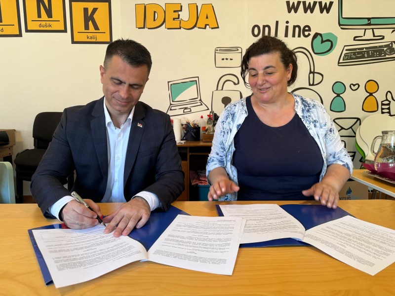 Министар је са председницом Удружења Радмилом Берић, која са сарадницима води школу српског језика за више од 100 малишана основношколског узраста, који живе на територији општине Бискупија, потписао уговор о подршци пројектима за очување српског језика и ћирилице.