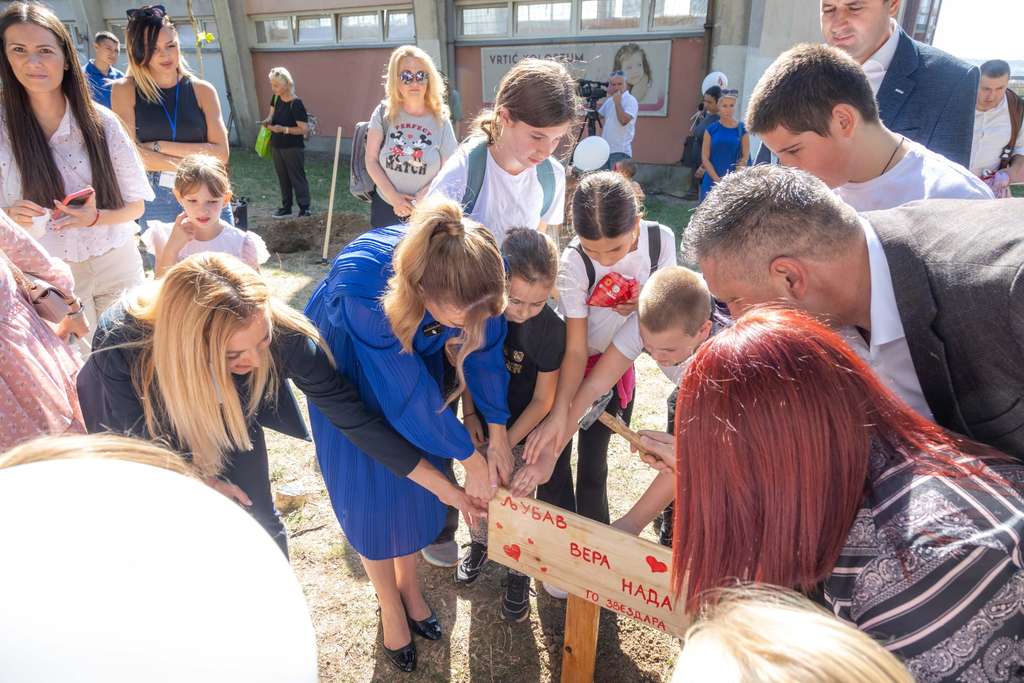 Ђурђевић Стаменковски је, заједно са председником општине Звездара Михаилом Досковићем и присутном децом, посадила три стабла, као пример оних вредности на којима почива породица, а то су љубав, вера и нада.