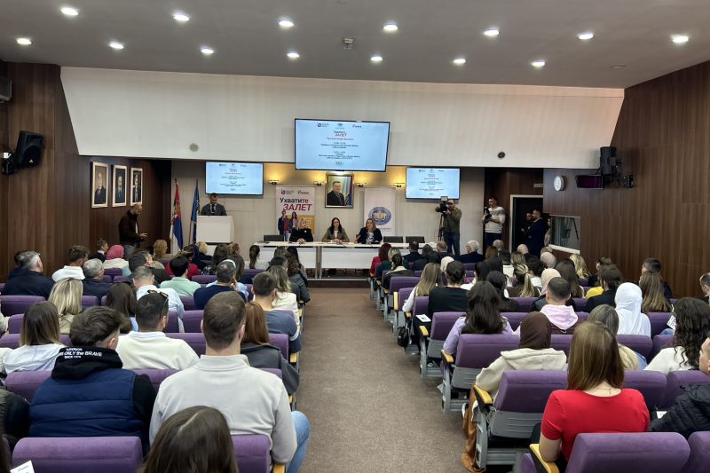Министарка Жарић Ковачевић је у сали Државног универзитета у Новом Пазару отворила трибину посвећену значају и користима студентске праксе у јавној управи.