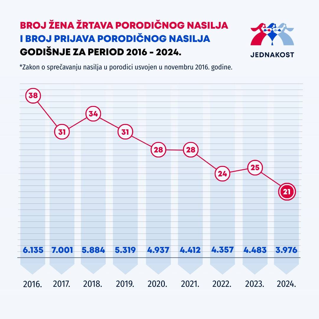 Она је додала да је уз овај податак, пре свега као вид мотивације жртава и потенцијалних жртава, важно подсетити да је од 2016. године, од када је усвојен Закон о спречавању насиља у породици, број смртних исхода смањен за 45 одсто, што јасно показује да систем функционише онда када се активира.