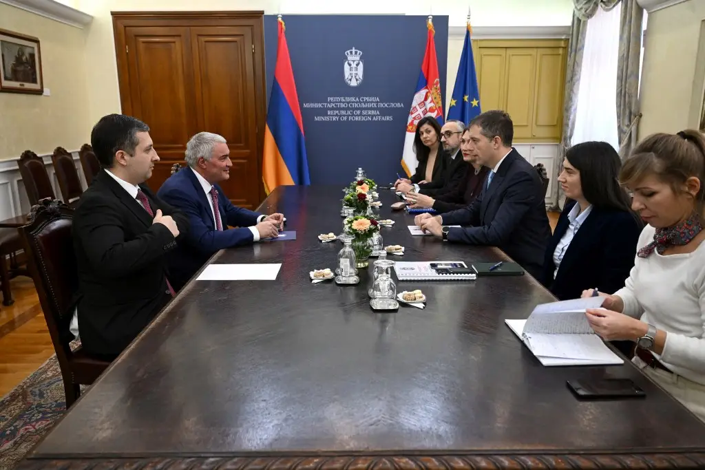 Министар спољних послова у Влади Републике Србије Марко Ђурић разговарао је данас са нерезиденцијалним амбасадором Републике Јерменије у Србији са седиштем у Прагу Ашотом Ховакимијаном о унапређењу билатералних односа и сарадње двеју земаља.