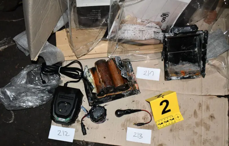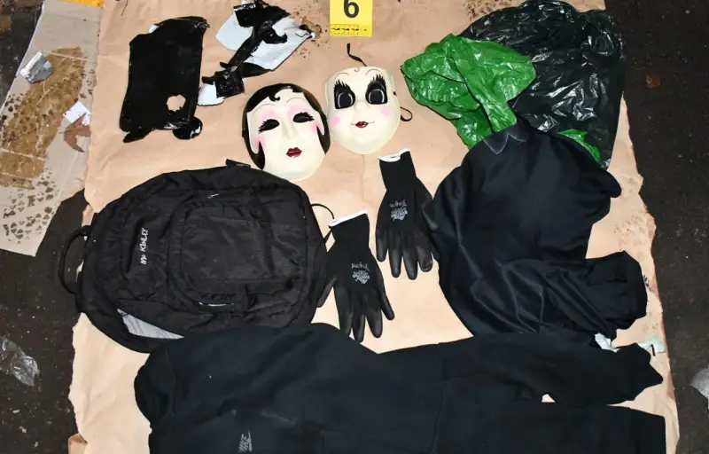 Пронађена су и два панцирна прслука са ознакама „полицијаˮ, средства за везивање – лисице, опасачи и футрола за ватрено оружје, као и импровизована службена легитимација МУП-а, ручне радио-станице за комуникацију и више маски за сакривање лица.