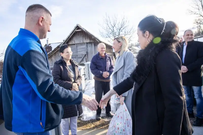 Мацура је посетила и породицу Матић у селу Тршић, која је током трајања елементарне непогоде била директно угрожена и која је три дана била без струје.