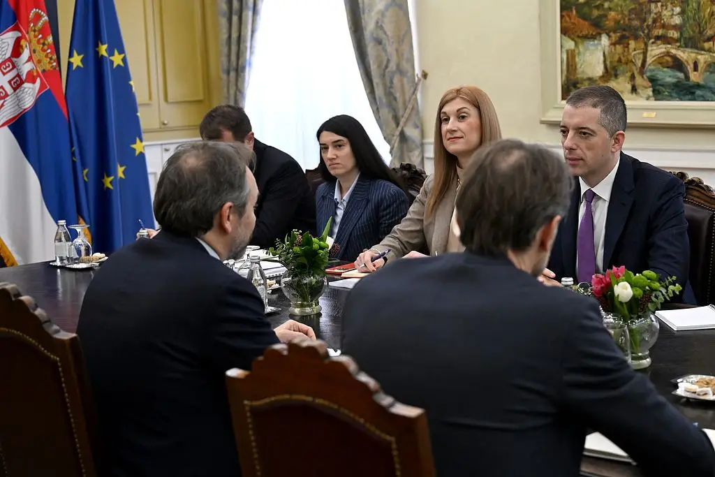 Министар спољних послова у Влади Републике Србије Марко Ђурић разговарао је данас са замеником генералног директора за регион Западне Европе у Европској служби за спољне послове (ЕЕАС) Емануелеом Жиофреом о односима Србије и Европске уније, динамици приступног процеса, регионалној сарадњи, као и о актуелним међународним приликама.