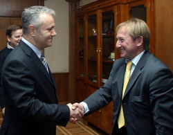 Потпредседник Владе Републике Србије и председник Скијашког савеза Србије Млађан Динкић разговарао је данас са промотером овогодишњег сајма “Експо зим“, легендарним скијашем бивше Југославије Бојаном Крижајем.